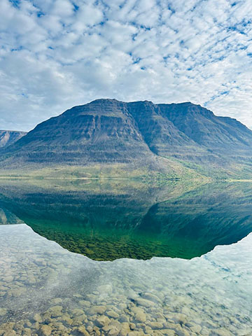 Первый поход наш был на гору Шайтан (название коренных народов) или Шаман-гору (русское название). Коренным народам подниматься на неё нельзя, а нам можно. Высота горы 1112 м., но подъём очень сложный – курумняк, сыпуха, троп нет вообще. К сожалению, моей физики не хватило для преодоления сыпухи. Мы шли с рюкзаками на два дня. Я смогла подняться только на 2\3 высоты и потом с мужем вернулись к озеру на ночевку в ожидании возвращения группы. Остальные шесть человек продолжили подъём. Гора нас пускала. В начале и конце похода над горой появлялась двойная радуга! Мыслю, что без рюкзака (12 кг) я бы прошла весь путь, но….
